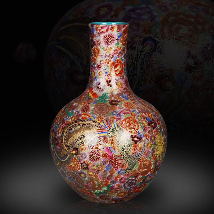 Hand painted filigree enamel colorful phoenix celestial ceramic vase
