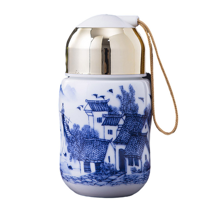 Portable cute mini ceramic thermos mug with rope multiple styles