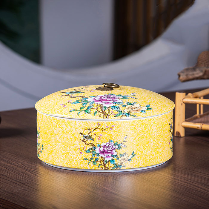 Sealed moisture-proof yellow enamel ceramic storage container