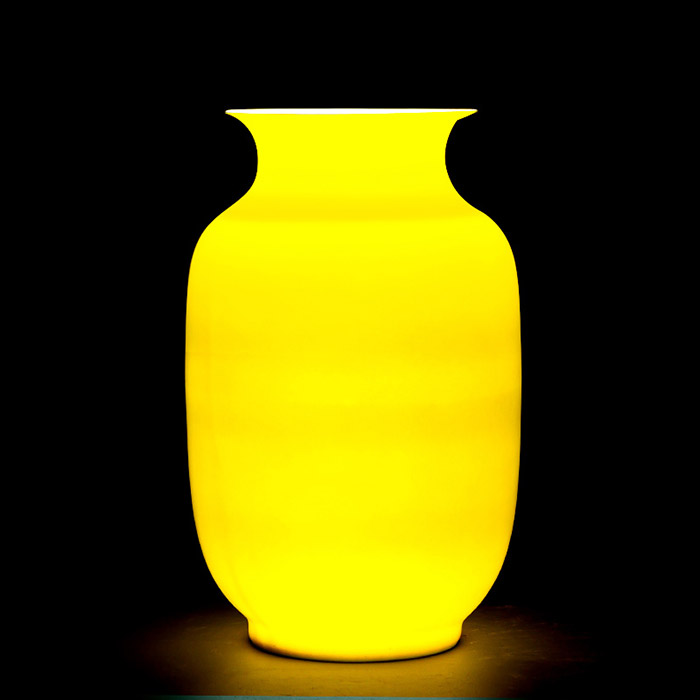 Yellow thin tire ceramic floor standing flower vase and ornament