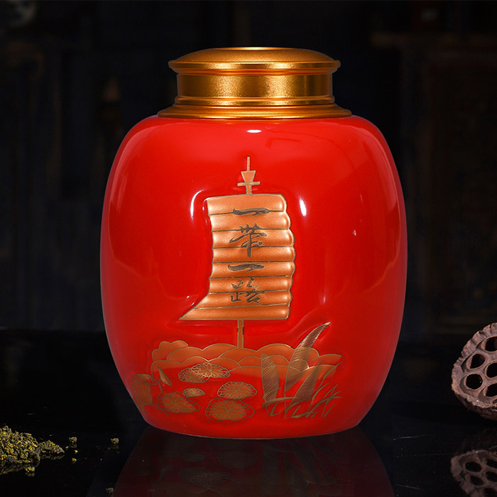 Vintage small sealed moisture-proof red ceramic storage pot ornament