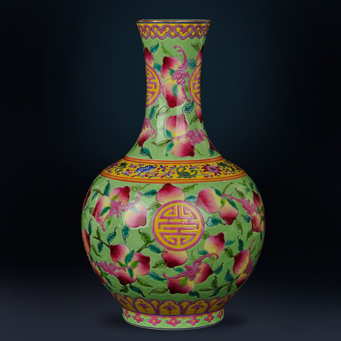 Vintage qing qianlong pastel green cermic flower vase with peaches