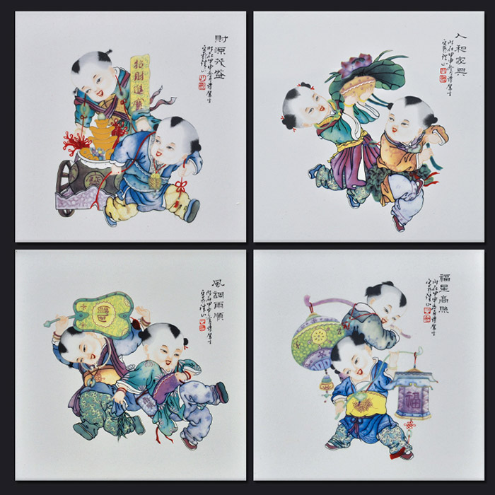 Jingdezhen decorative square boys ceramic wall hanging plates home