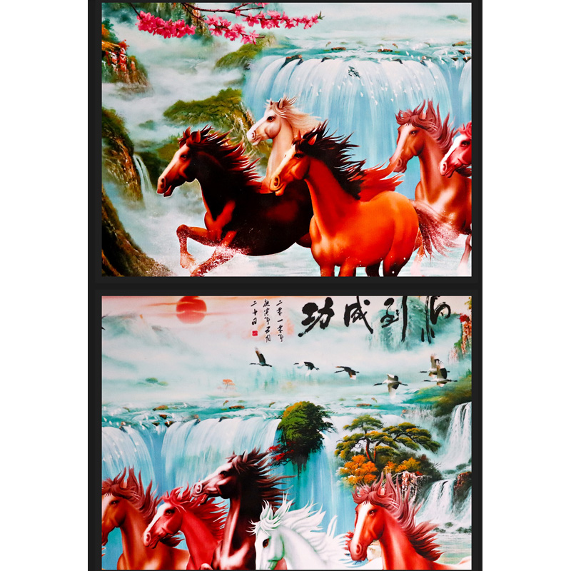 Eight horses dining room sofa background wall ceramic paintings