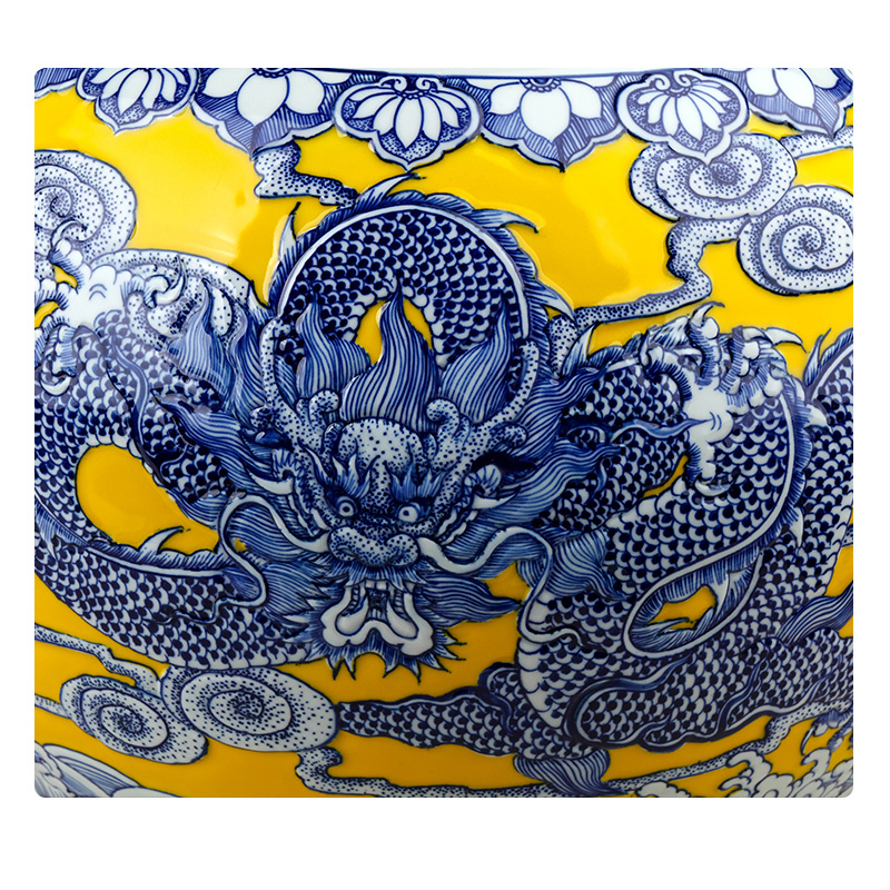 Jingdezhen vintage carving dragon yellow ceramic storage jar home