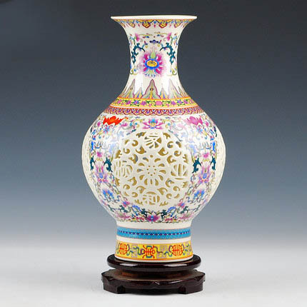 Jingdezhen enamel hollow ceramic vase