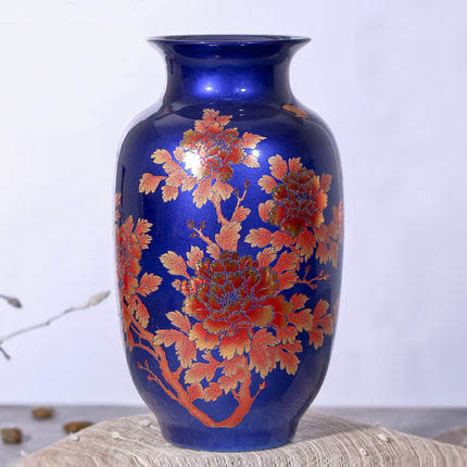 Winter melon golden flower crystal glazed blue vases and ornaments