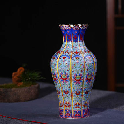 Antique multilateral enamel porcelain flower vase for bedroom china