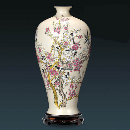 Jingdezhen plum blossom and bird pattern golden big ceramic vase