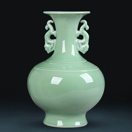 Two ears mint glazed green chinese porcelain vases and ornaments