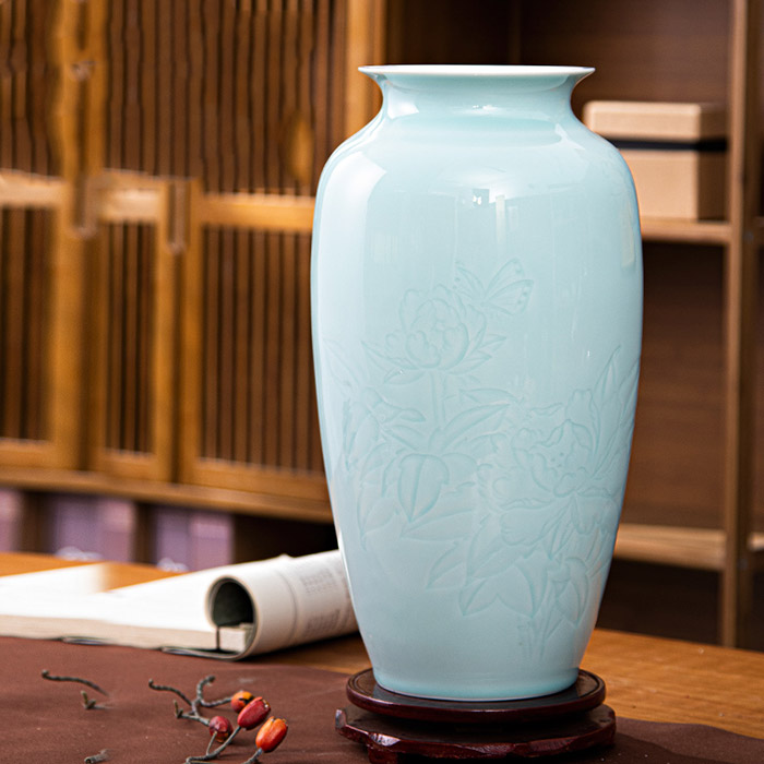 Designer hand painted thin tire mint green chinese porcelain vase