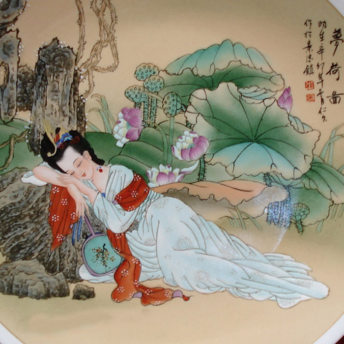 Jingdezhen hand painted pastel beauty figure ceramic plate ornament