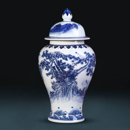Hand painted landscape blue and white ceramic vase home accessories