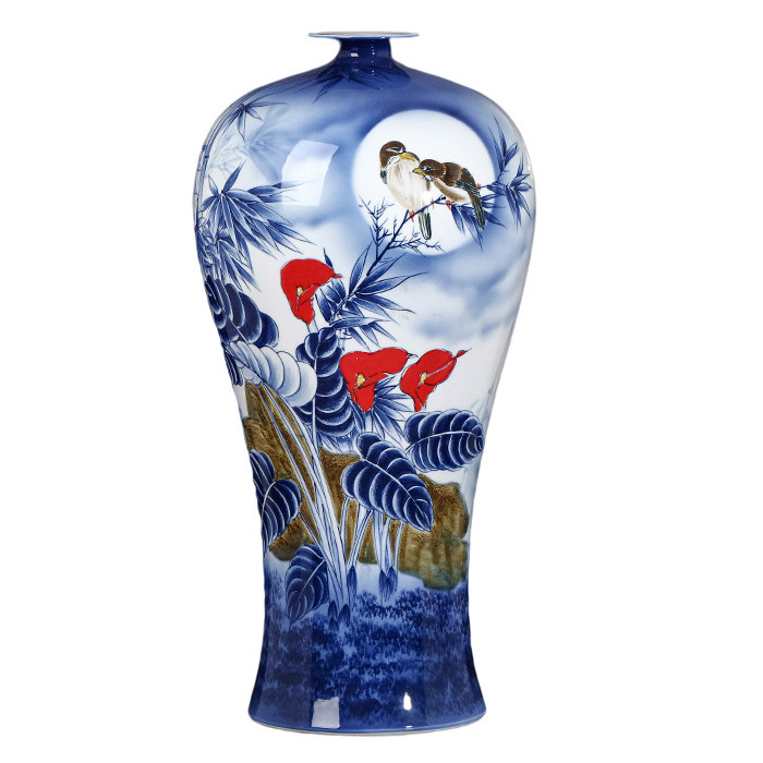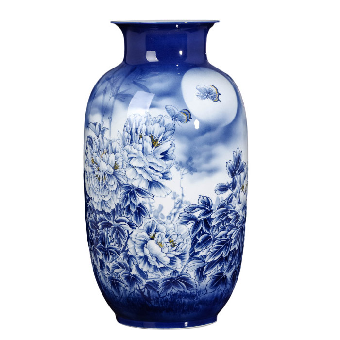 Designer large hand painted blue and white porcelain vases multiple