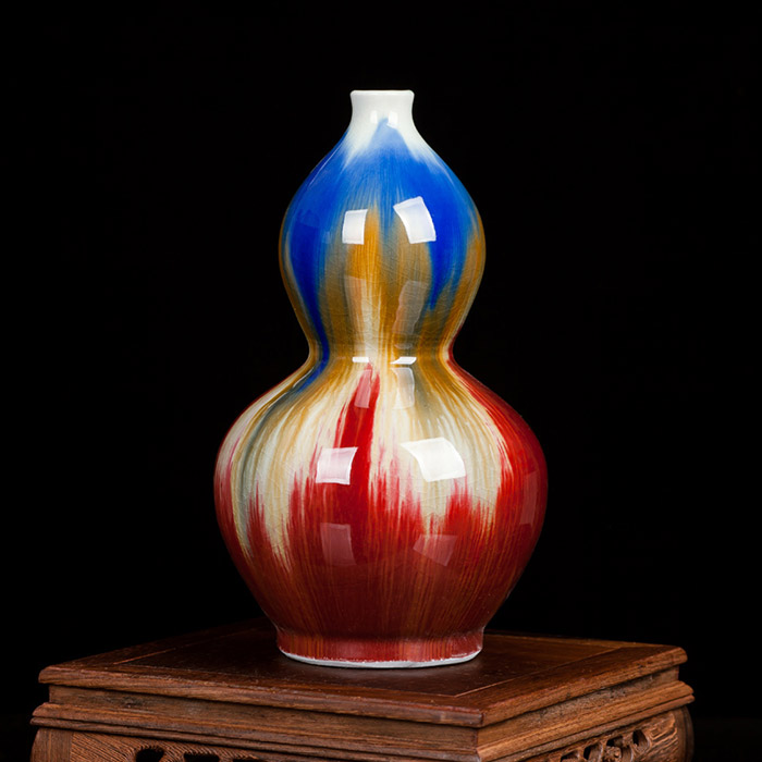 Vintage gourd shape kiln with cracked glaze ceramic vase ornament