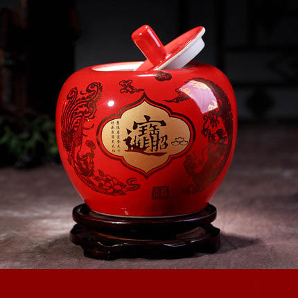 Apple Shaped Good Fortune big red Ceramic Storage Jar