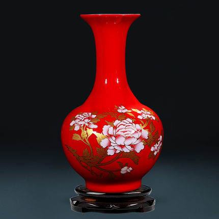 Jahrriesnge red peony flower vase cna0921 Porcelain