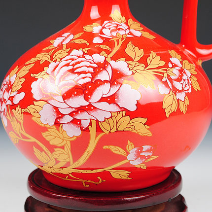 Jingdezhen gourd shape red ceramic vase with peony pattern