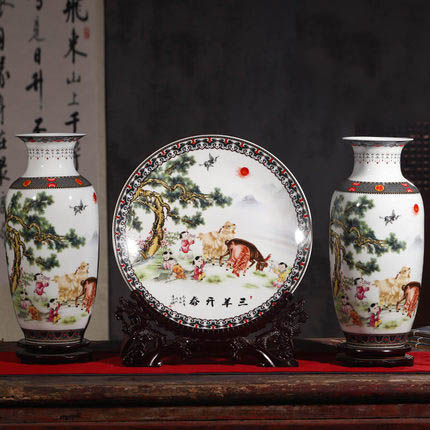 Jingdezhen big ceramic vase three-piece set with sheep on