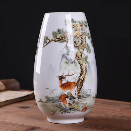 Jingdezhen tree and deer ceramic small vase