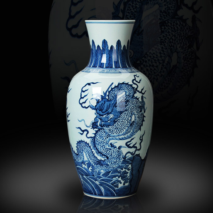 Blue and white hammer shape flower porcelain vases with sea dragon