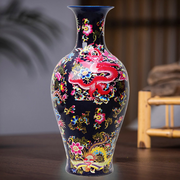 Jingdezhen extra tall dragon and phoenix auspicious ceramic vase