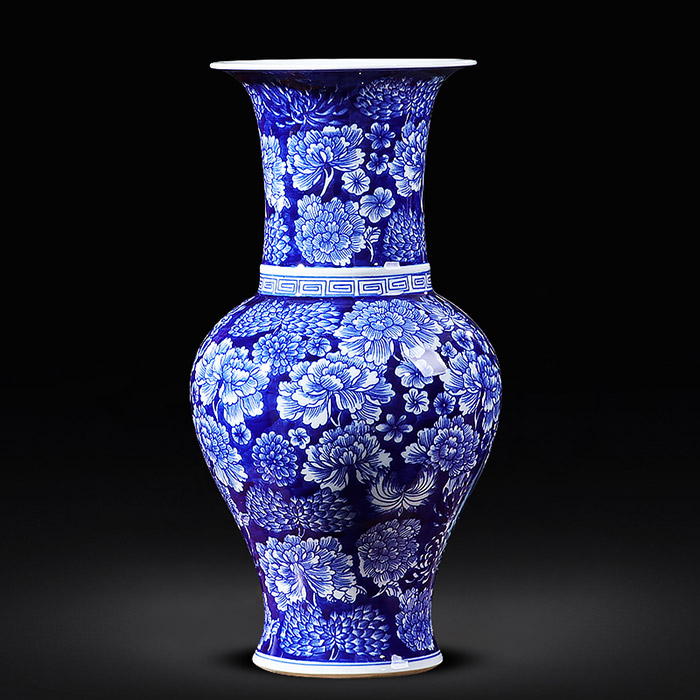 Antique bright blue and white pottery vases with short neck
