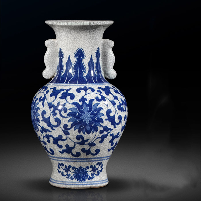 Small two ears blue and white chinese ice cracked glaze ceramic vase
