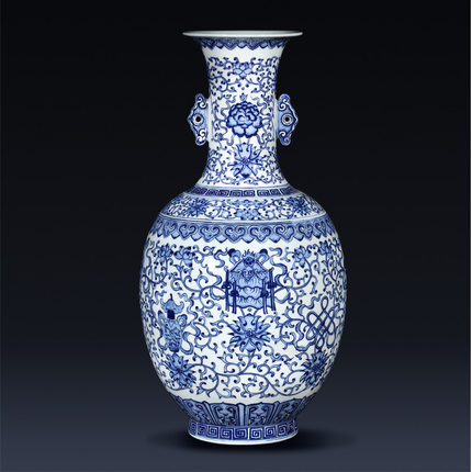 Painted Blue and White Eight Treasures Binaural Ceramic Vase