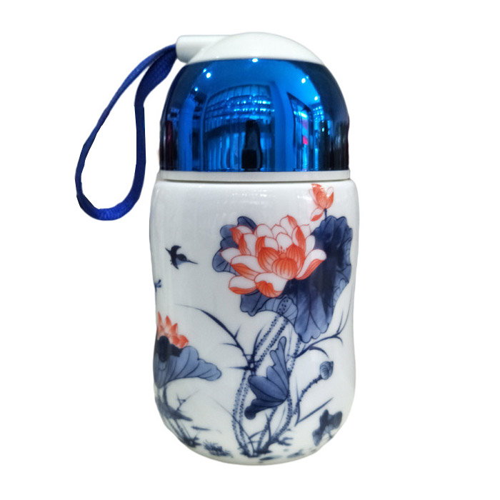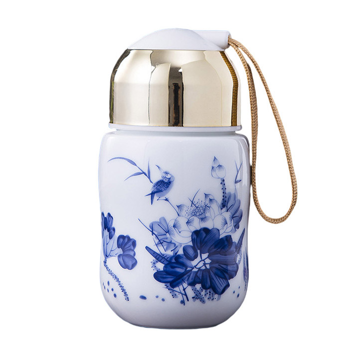 Portable cute mini ceramic thermos mug with rope multiple styles