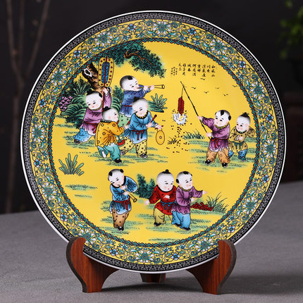 35cm innocent and childlike decorative ceramic hanging plate