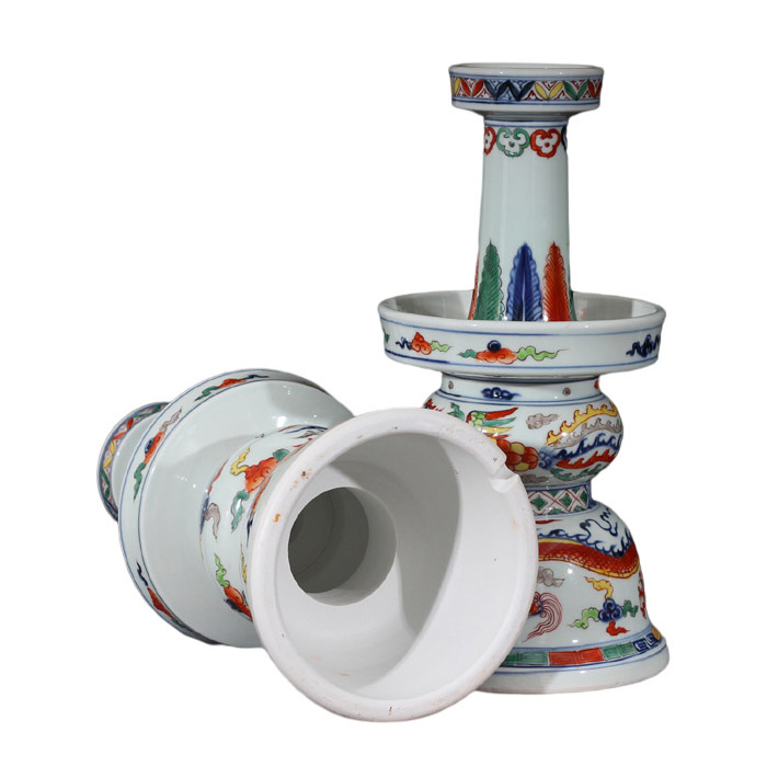 Blue and white glaze red ceramic candle holder with dragon and phoenix
