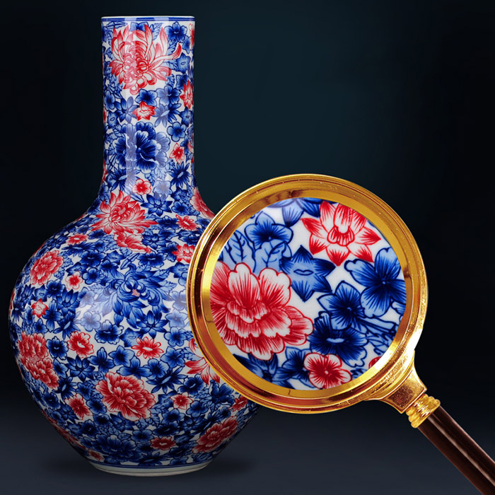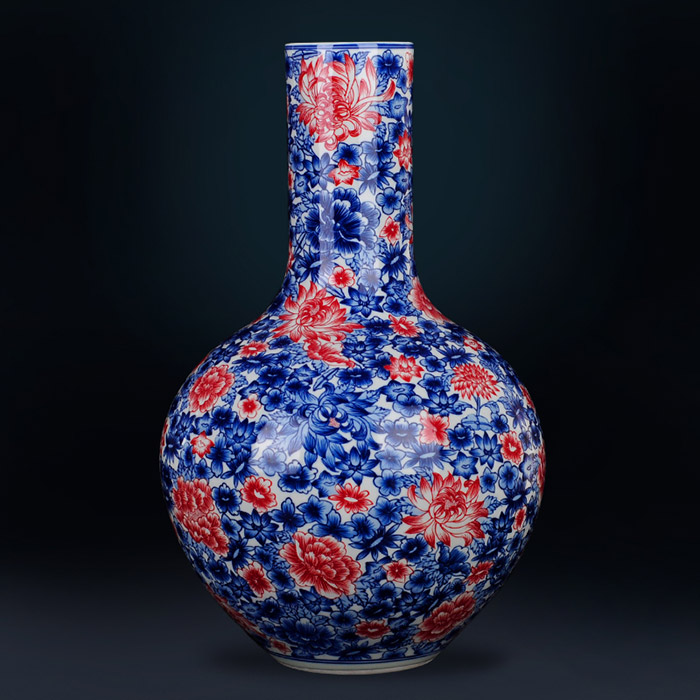 Vintage qing dynasty qian long blue and white glazed red ceramics vase