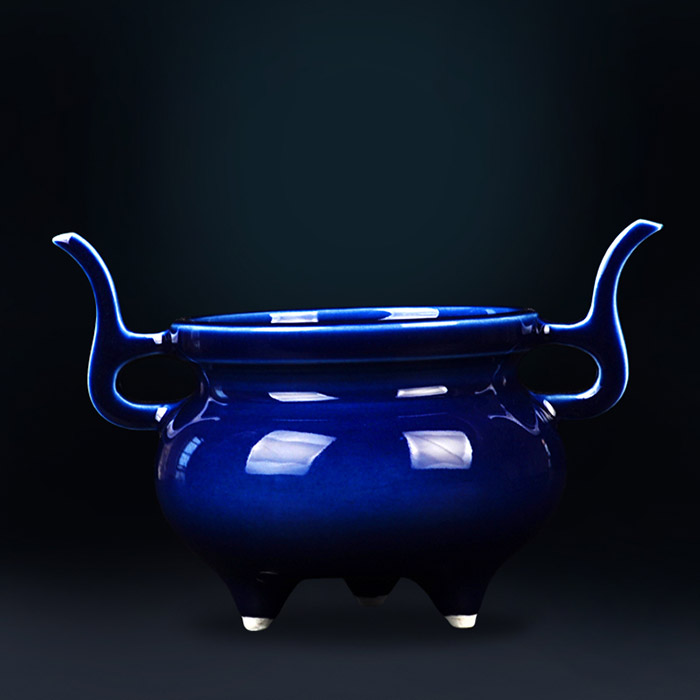 Jingdezhen handmade three-legged blue ceramic aromatherapy stove home