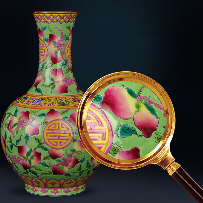 Vintage qing qianlong pastel green cermic flower vase with peaches