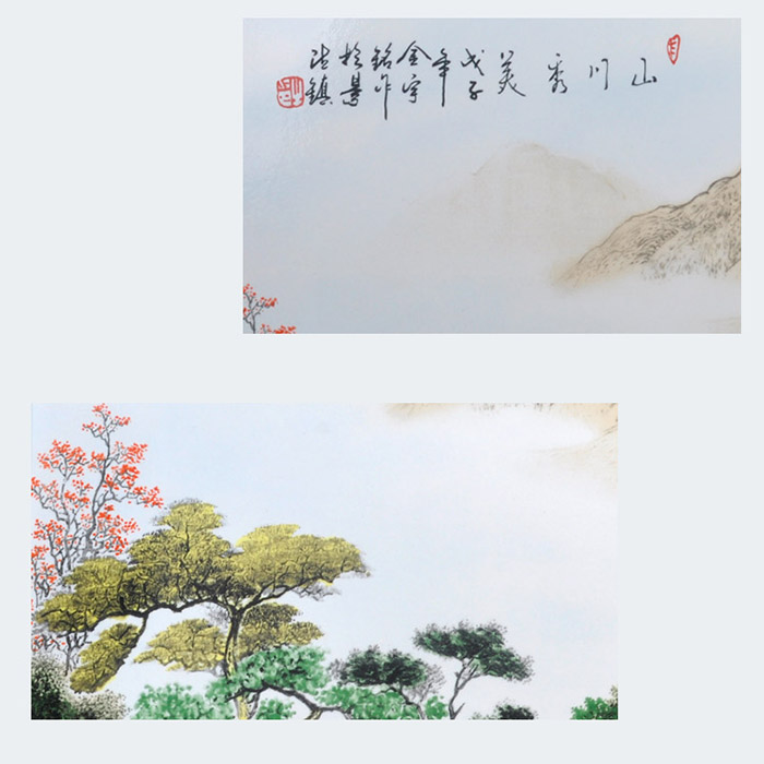 Beautiful mountains and rivers painting ceramic wall hanging plates