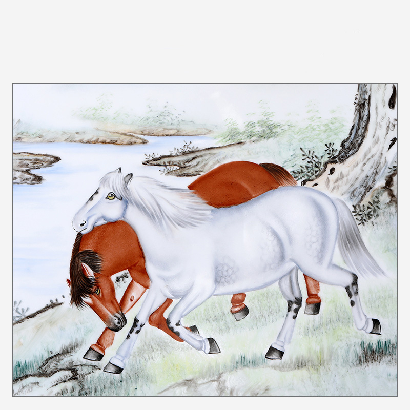Ceramic painting with frame dimensions:90cm(length)x50cm(width)x3cm(thickness)