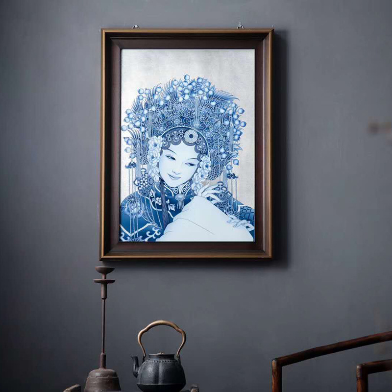 Ceramic painting with frame dimensions:81cm(height)x61cm(width)x0.6cm(thickness)