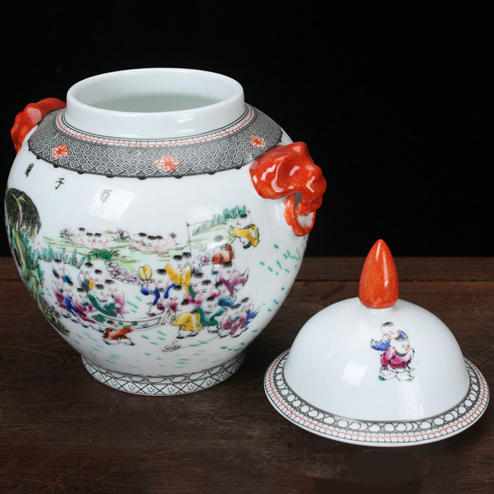 Hand painted pastel figure ceramic storage jars ornaments living room