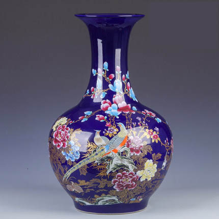 Royal magnolia flower and golden pheasant ornamental ceramic vase