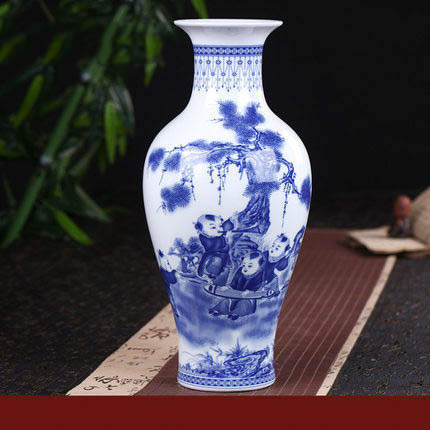 Jingdezhen In-glaze Boys Pattern Winter Melon Shaped Ceramic Vase