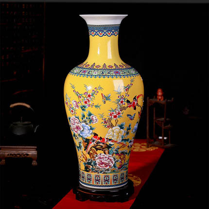 Enamel yellow fishtail shape large vase