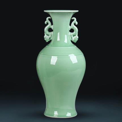 Two ears mermaid shape mint glazed green chinese porcelain vases