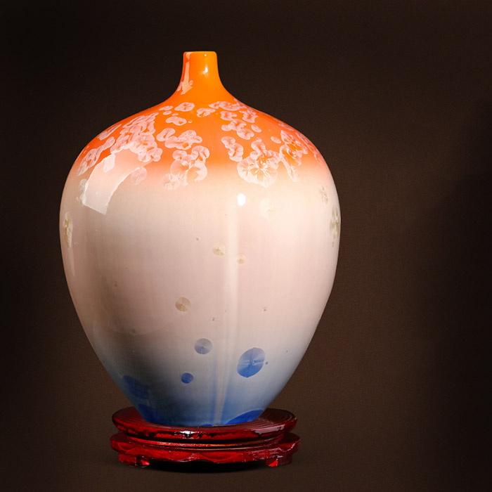 Chinese crystal glazed orange to blue water drop ceramic vase home