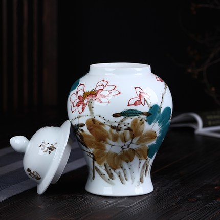 Hand-painted freehand lotus ceramic pot ornaments