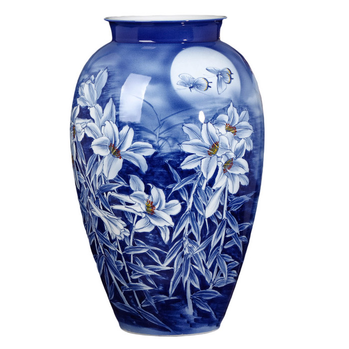 Designer large hand painted blue and white porcelain vases multiple