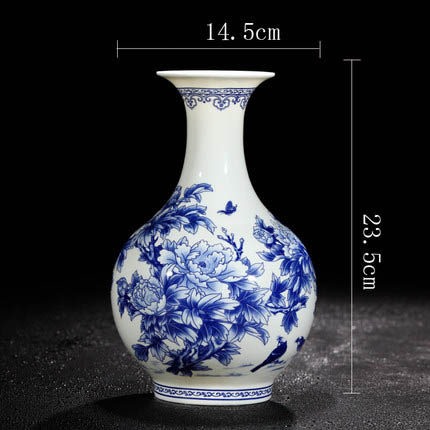 Peony pattern blue and white bone china vase and ornament