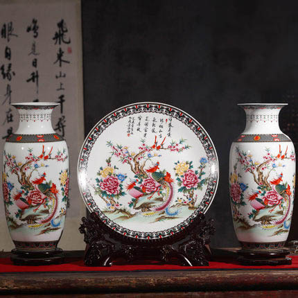 Jingdezhen big ceramic vase three-piece set with two phoenixes