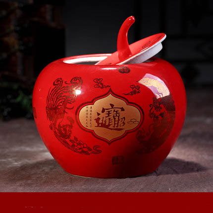 Apple Shaped Good Fortune red large Ceramic Storage Jar