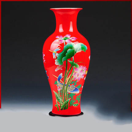 Jahrriesnge red lotus vase cna1010 Porcelain